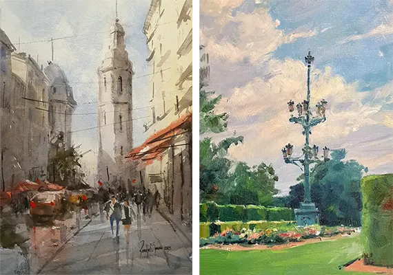 Antonio Serrato, y de pintura Alla Prima con Luis Pla. Especialista en acuarela y paisaje urbano..